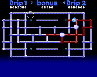 Originally created by Art Skiles and released in 1989 to public domain for the Amiga 500, Drip is a pacman-like game with a twist. This is my effort to recreate the game.